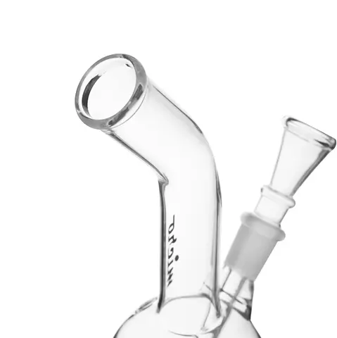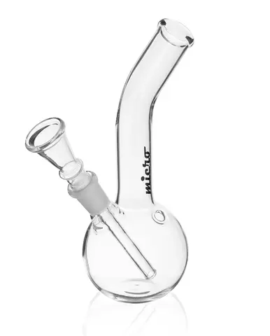 Micro Bong #2 - очередная вариация простого стеклянного бонга на каждый день из серии micro. Бонг выполнен из высококачественного стекла толщиной в 3 миллиметра. Это ещё одна из классических форм, представляющих собой сферический резервуар для воды и вырастающей из него изогнутой колбой, с характерным утолщением на ободке горлышка из утолщённого стекла. Вместительное ведёрко, отверстие для воздуха при выполнении хэд-шотов.